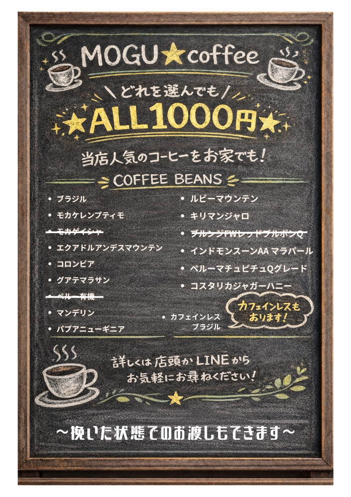 ※コーヒー豆の高騰化により
